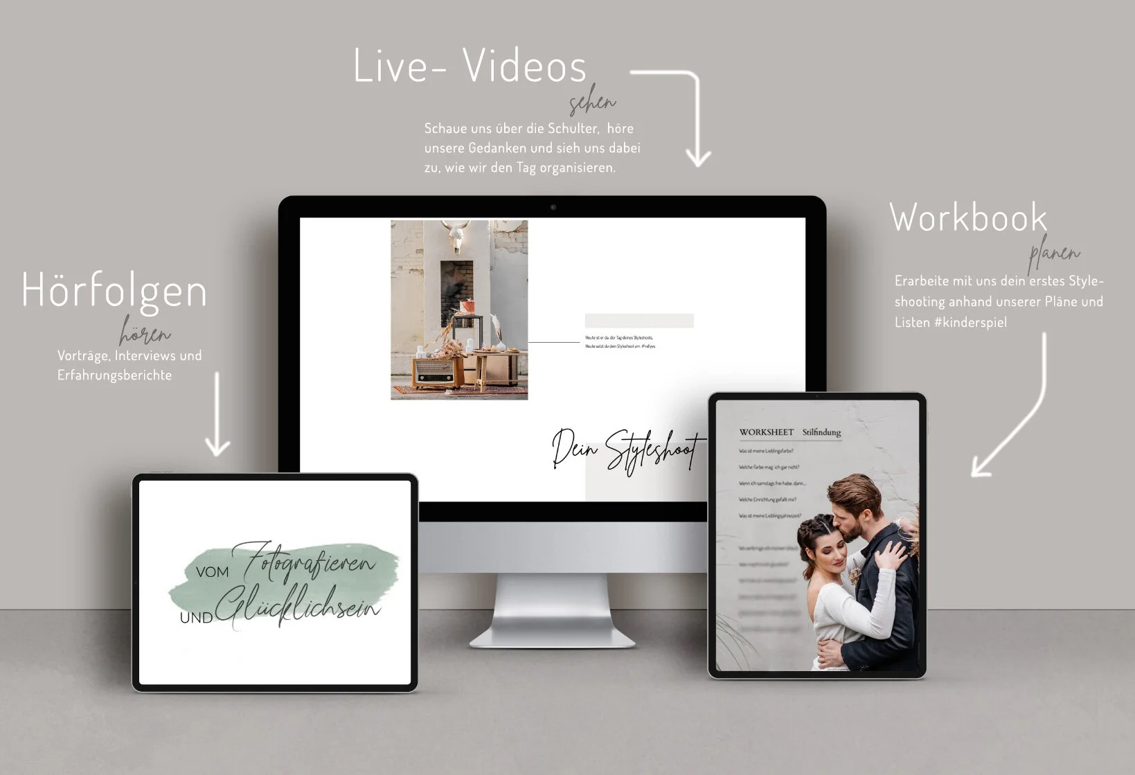 Und das ist dann dabei herumgekommen: Ein kompletter Onlinekurs zum Thema Styleshootings mit Videomaterial, Hörfolgen und einem Workbook. (Das es übrigens auch als Kompakt-Workbook einzeln zu kaufen gibt - oder zum hereinschnuppern bei der Newsletter-Anmeldung erstmal als kleines FreeWorkbook ).